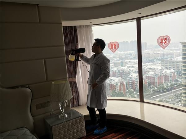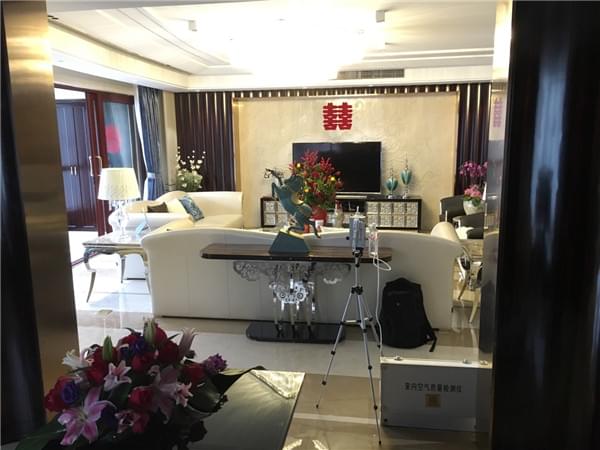 客廳大大的喜字!空氣治理專員在客廳進行檢測!
