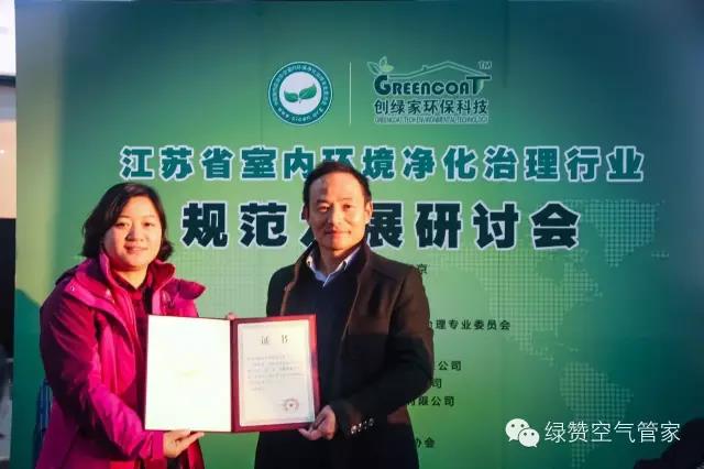 最后,凈化委向創(chuàng)綠家環(huán)保科技頒發(fā)了“蓓蕾健康空氣行動”江蘇省執(zhí)行單位證書。