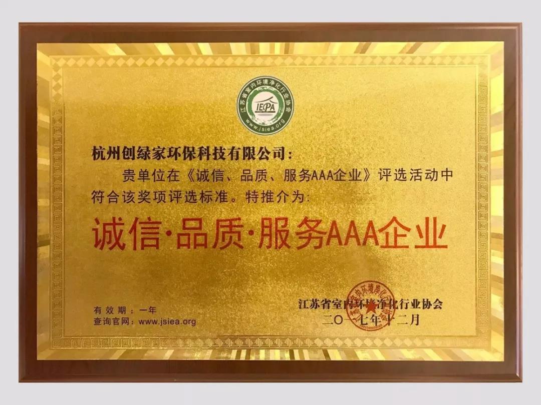 2018年1月13日,“中國(guó)室內(nèi)環(huán)境凈化行業(yè)協(xié)會(huì)聯(lián)盟”與“江蘇省室內(nèi)環(huán)境凈化行業(yè)協(xié)會(huì)”聯(lián)合舉辦的首屆“中國(guó)室內(nèi)環(huán)保行業(yè)創(chuàng)新創(chuàng)優(yōu)、融合發(fā)展”高峰技術(shù)年會(huì)在中國(guó)南京召開(kāi),我司榮獲誠(chéng)信加盟服務(wù)單位、“誠(chéng)信、品質(zhì)、服務(wù)”AAA企業(yè)、示范工程獎(jiǎng)、科技創(chuàng)新產(chǎn)品獎(jiǎng)等多項(xiàng)榮譽(yù)。