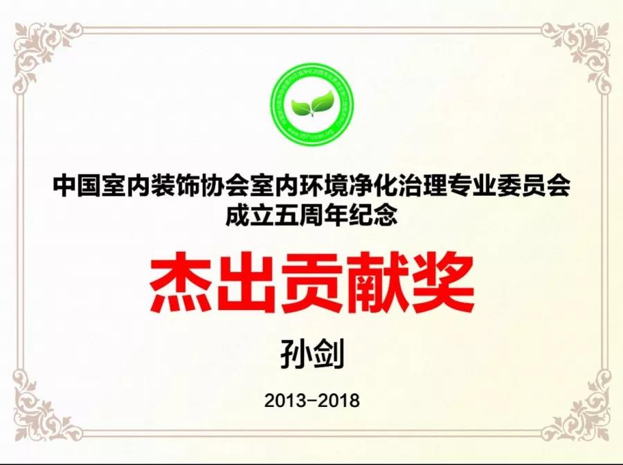 2018年12月19日,中國(guó)室內(nèi)環(huán)境凈化治理行業(yè)第五屆技術(shù)創(chuàng)新分享會(huì)在北京新聞大廈長(zhǎng)安發(fā)布廳舉行。創(chuàng)綠家環(huán)保總裁孫劍榮獲凈化委成立5周年杰出貢獻(xiàn)獎(jiǎng)和青年菁英獎(jiǎng)。