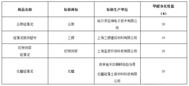 涉嫌甲醛凈化性能40%以下的樣品測試結(jié)果匯總表