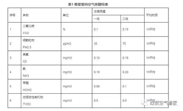 當所有指標滿足《中小學教室空氣質量標準》的一級濃度限值時,室內空氣質量為一級;當有一項或多項指標不滿足一級濃度限值,但是滿足二級濃度限值時,室內空氣質量為二級;當有任何一項指標不滿足二級濃度限值時,室內空氣質量為不合格。